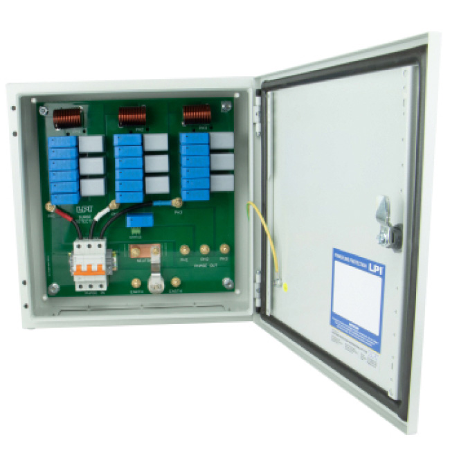 - Tủ cắt lọc sét 3 pha 32A LPI là giải pháp chống sét lan truyền hiệu quả, bảo vệ hệ thống điện 3 pha khỏi nguy cơ sét đánh và quá điện áp.